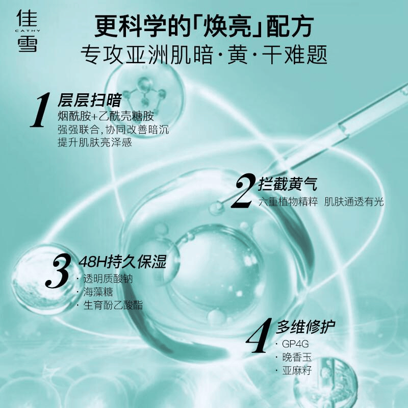 佳雪品牌专注于光泽与保湿,开发出的肌底液不仅仅具备良好的吸收性,还能改善肤色暗沉。其特别添加的成分可帮助提升肌肤内部的亮度,让肌肤重现自然光泽。此外,佳雪在设计上十分注重使用感,使得每次护肤都成为一种享受。